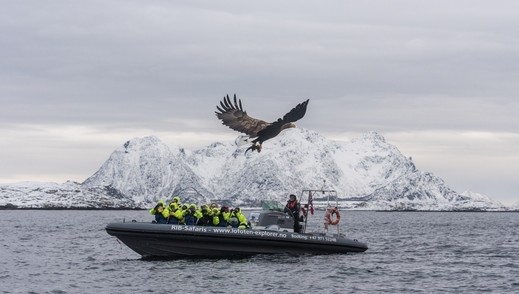 Prima colazione e check out. In mattinata breve trasferimento a piedi per raggiungere il molo dove sono ormeggiati i gommoni. Ritiro delle tute impermeabili e partenza dell’escursione di circa un’ora e mezza. Si navigherà nei dintorni di Svolvaer per poter ammirare lo spettacolo che offre la costa delle Lofoten dal mare. L’itinerario prevede la navigazione, fra scogli e piccole isole, del braccio di mare che divide le isole Lofoten dalle Vesteralen fino al famoso Troll Fjord, fra acque cristalline e le famose spiagge bianche delle Lofoten che ricordano quelle caraibiche. Si potranno avvistare le aquile di mare volare attorno alle ripide cime delle montagne o intorno al gommone, protagoniste di foto e filmati. Nel nord della Norvegia c’è una grande concentrazione di questi volatili. (L’orario di partenza e l’itinerario potranno subire variazioni in base alle condizioni meteo.) Tempo libero a Svolvaer per passeggiare nel centro e partenza per Harstad. Cena e dopo cena di fronte all’ hotel possibilità di caccia all’aurora.