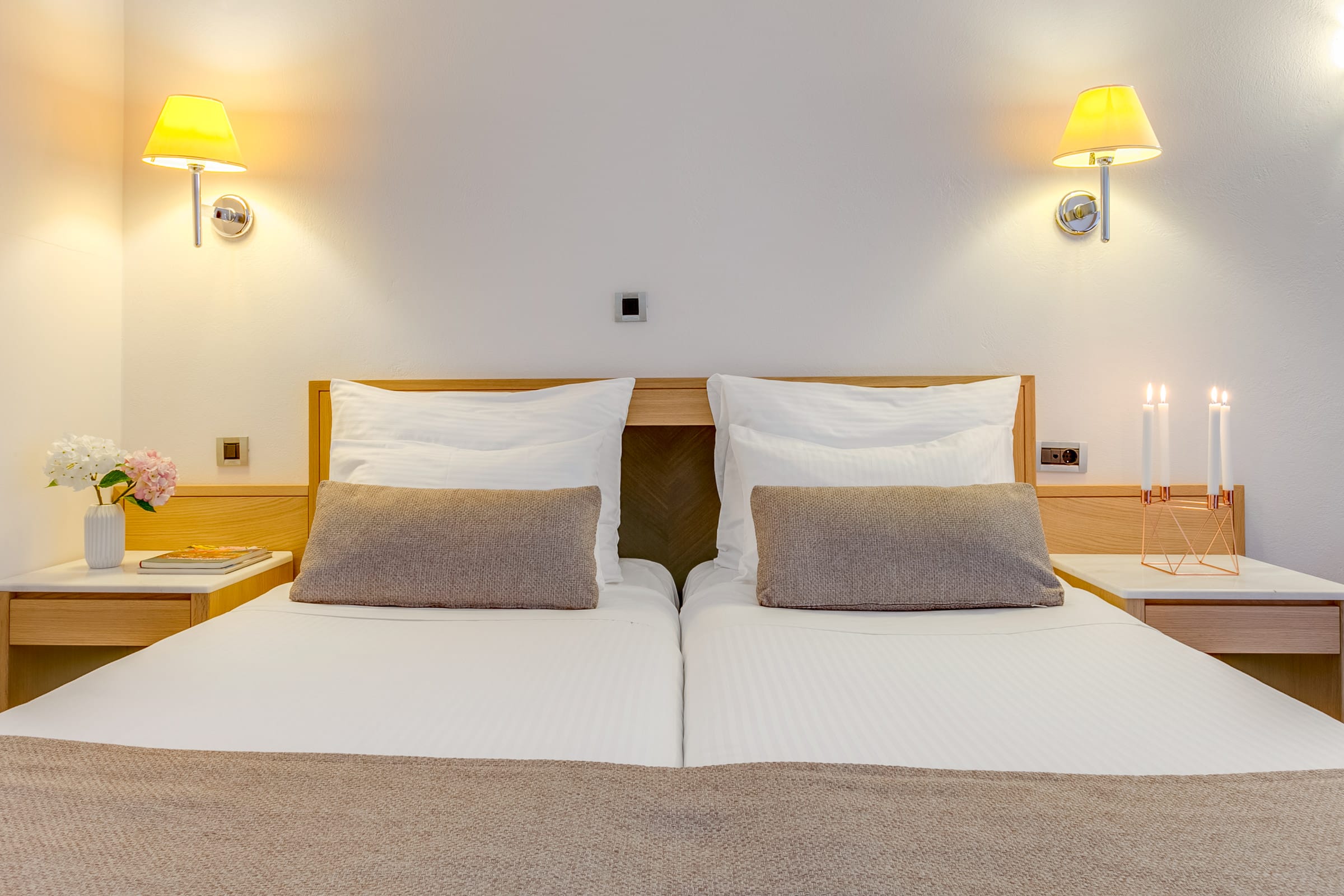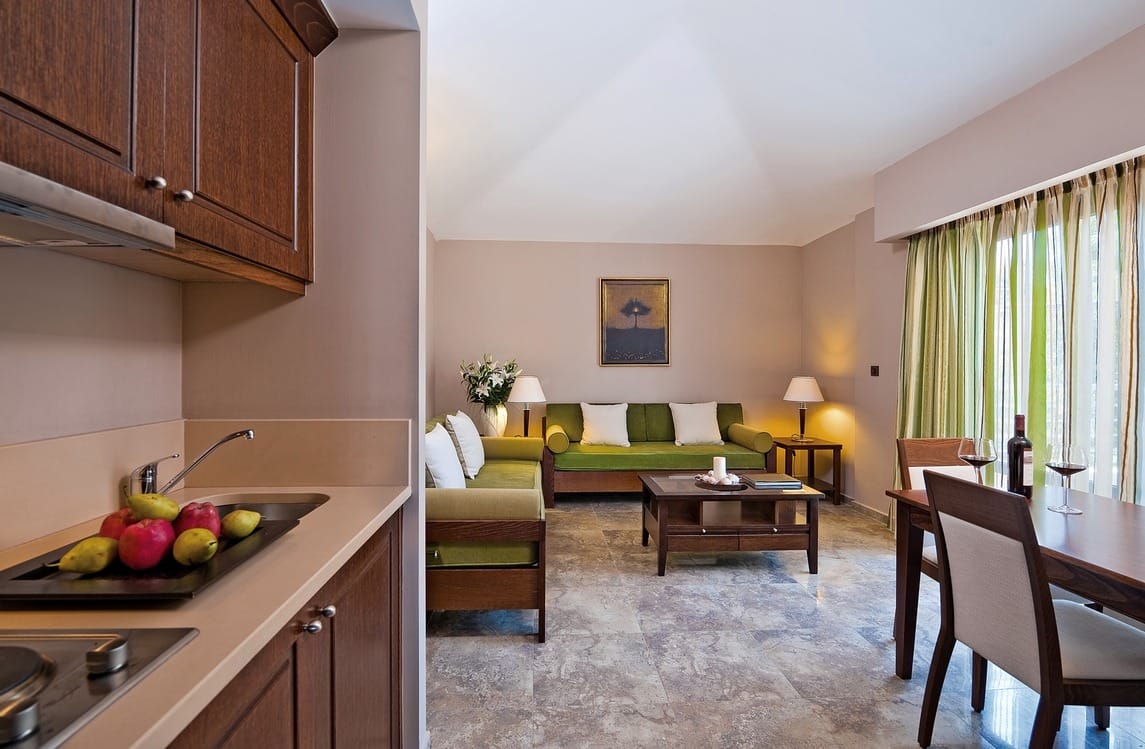 L’hotel è stato elegantemente progettato con sistemazioni confortevoli e una vasta gamma di servizi. Ci sono varie tipologie di camere: doppie standard, Maisonettes, camere familiari, camere familiari con piscina privata, appartamenti, monolocali, suite executive e suite con piscina privata, tutte dotate di aria condizionata, balcone o terrazza, bagno/WC, asciugacapelli , TV satellitare, accesso internet (ISDN), telefono diretto, cassaforte, frigobar su richiesta.