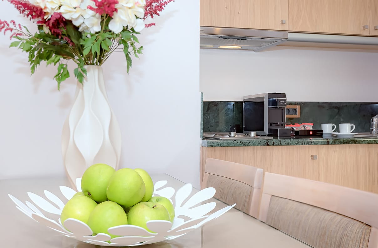 Bilocali o maisonette, con una camera matrimoniale e un soggiorno con 2 divani letto singoli, compreso un multi-angolo cottura completamente attrezzato e un frigorifero. Dispongono inoltre di balcone o terrazza con vista sul giardino, sulla piscina o sul mare.