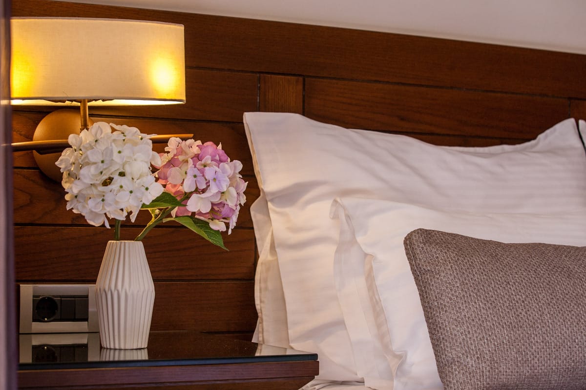 Camera da letto principale: una spaziosa camera a due letti con un ampio bagno in marmo con vasca e doccia separate, aria condizionata regolabile autonomamente, TV satellitare a colori, canali musicali, telefono diretto, accesso a Internet (ISDN), minifrigo o minibar (disponibile su richiesta) e cassetta di sicurezza.