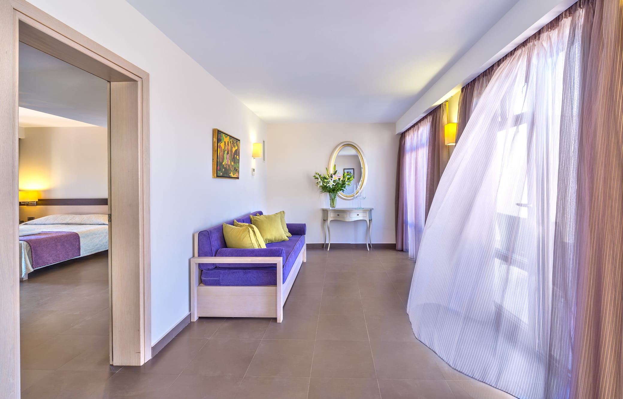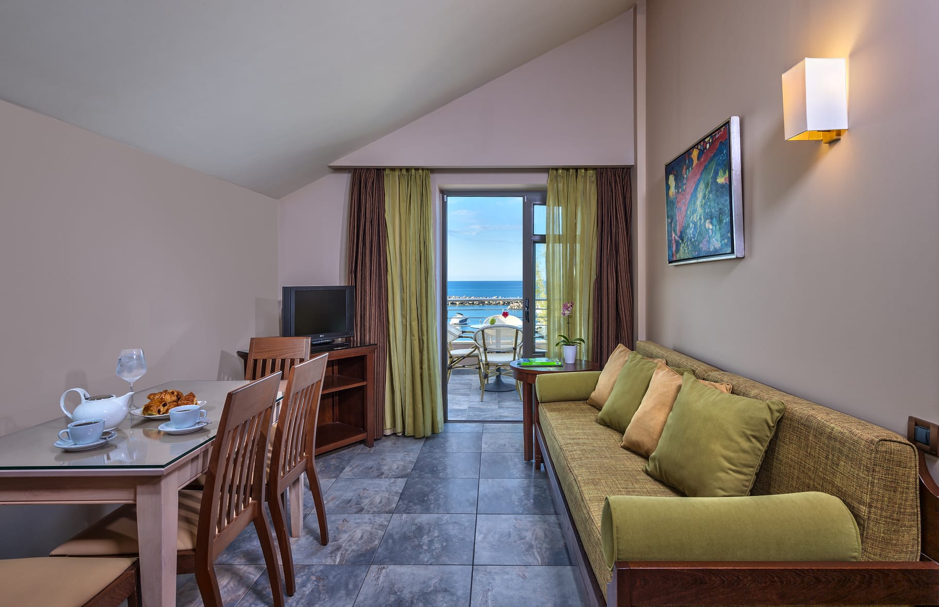 Uno spazioso appartamento con una camera da letto con divano letto e multi-angolo cottura completamente attrezzato, frigorifero, un ampio bagno in marmo con vasca, asciugacapelli, aria condizionata regolabile autonomamente, TV satellitare a colori, canali musicali, telefono diretto, accesso a Internet (ISDN ), frigobar (disponibile su richiesta), cassetta di sicurezza e balcone o veranda.